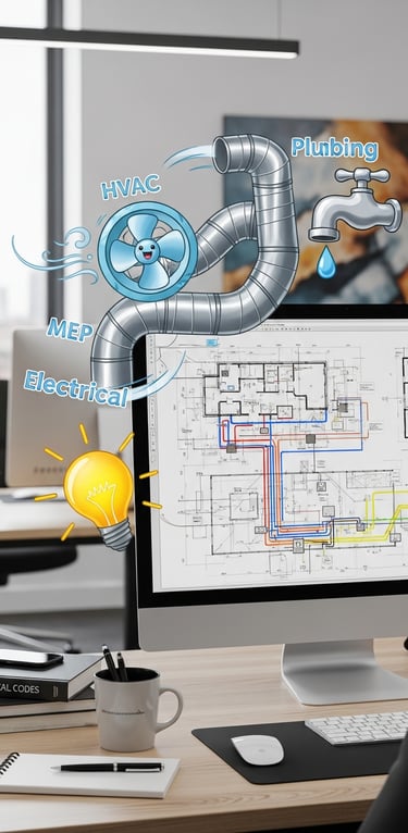 تصممي ومراجعة أنظمة MEP وتشمل التكييف والتهوية والسباكة والكهرباء بطريقة مرتبة وواضحة تضمن إن كل الأنظمة شغالة مع بعض بدون تعارض. نحرص إن التصاميم تكون سهلة التنفيذ في الموقع ومطابقة للكودات والمعايير المعتمدة عشان نقلل الأخطاء ونرفع جودة الشغل من البداية إلى نهاية المشروع.